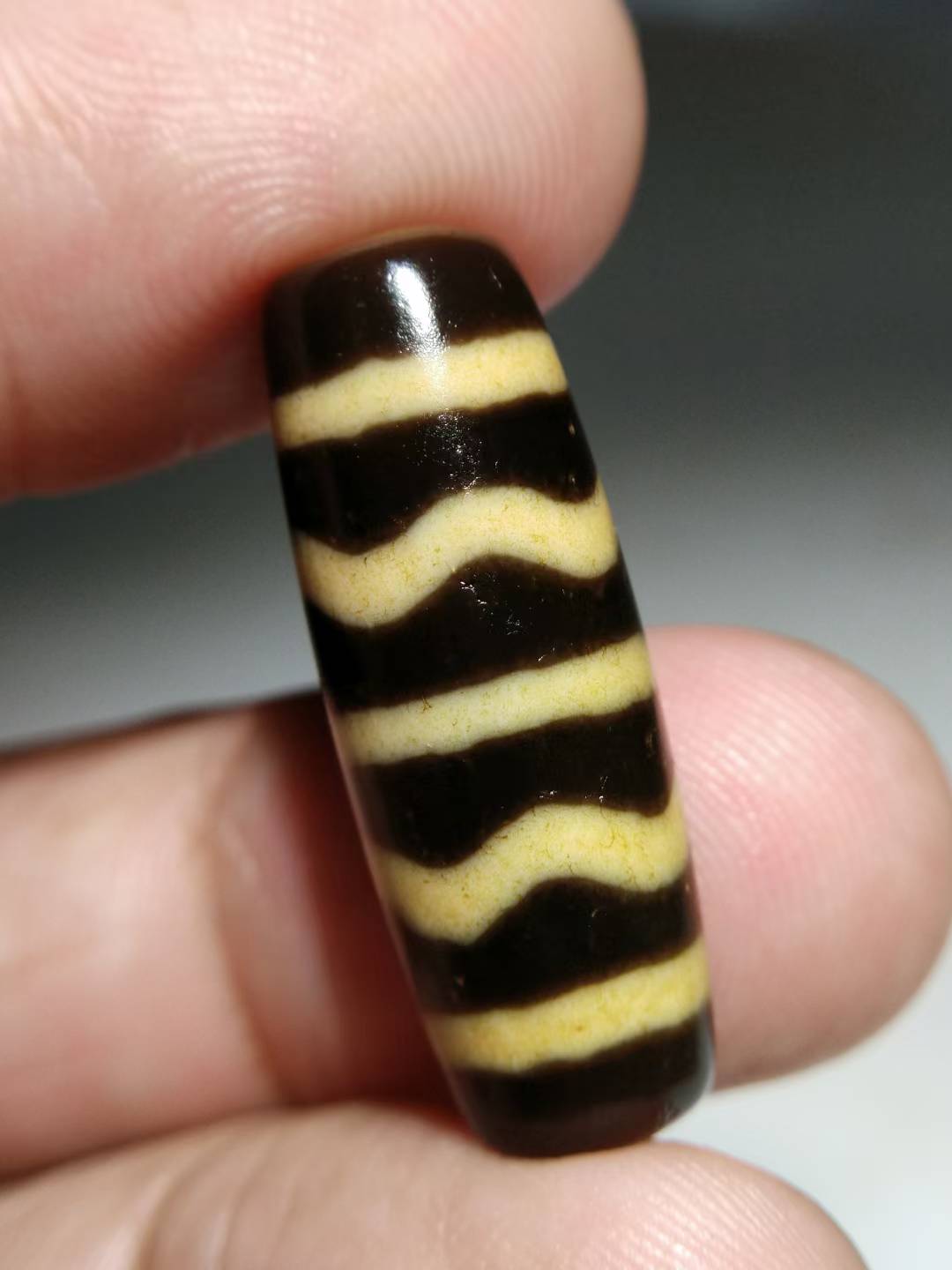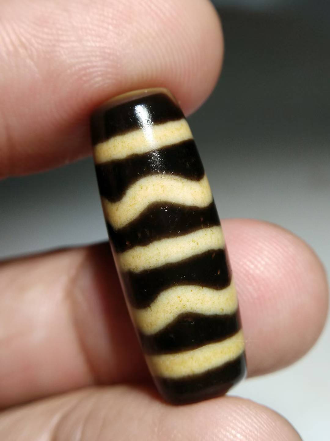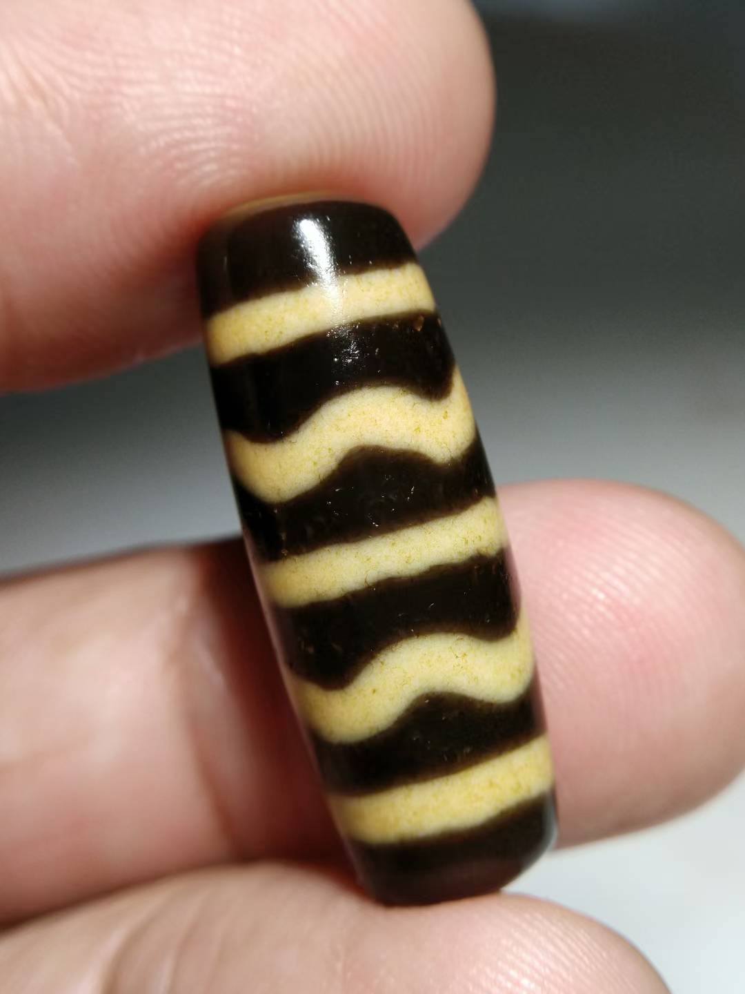 NO.8101Ancient Tibetan Pure Dzi Bead, Water Ripple Pattern, 30x11mm