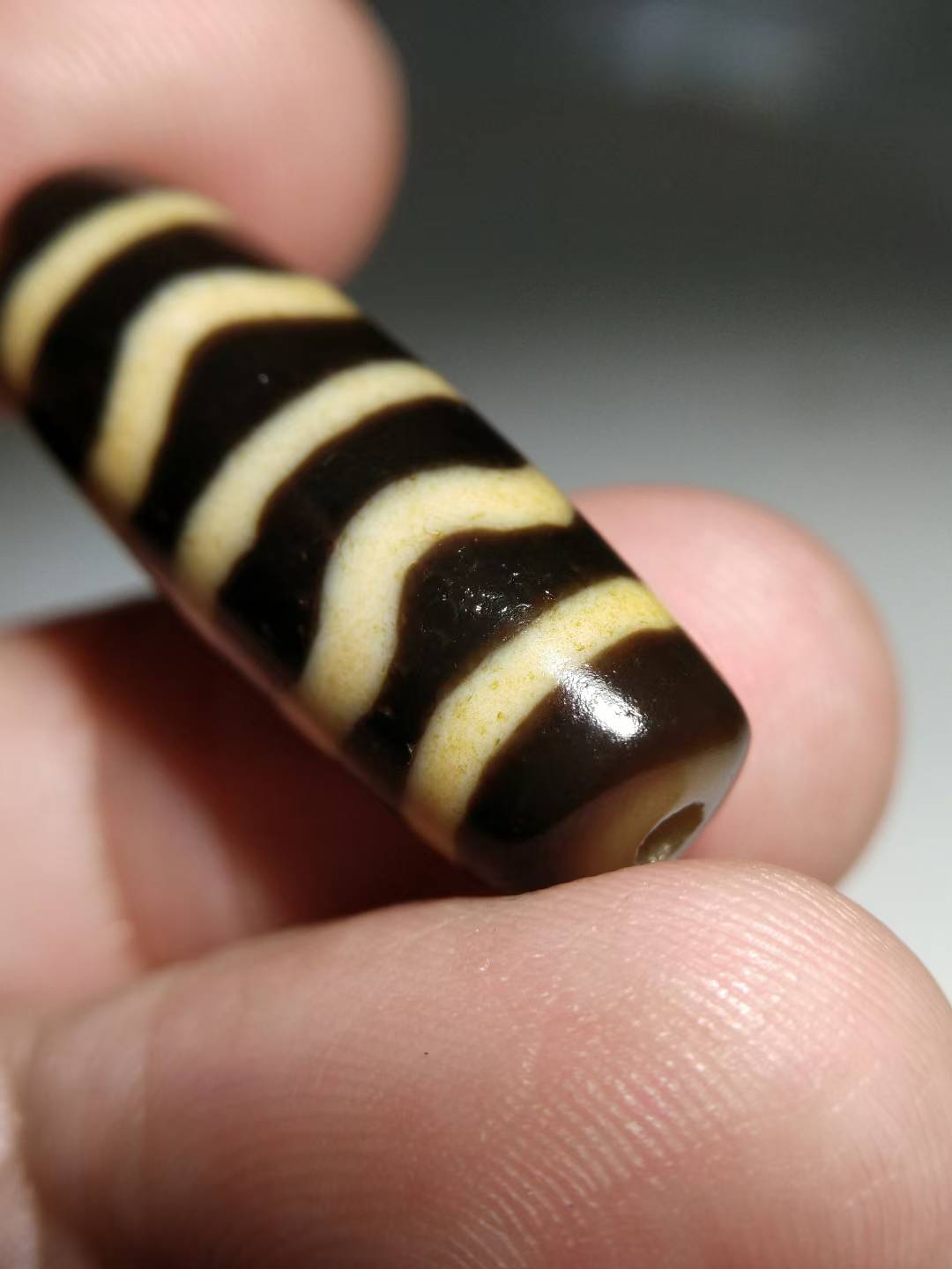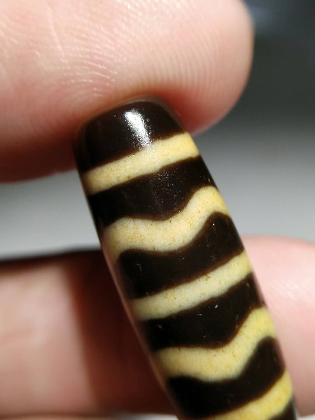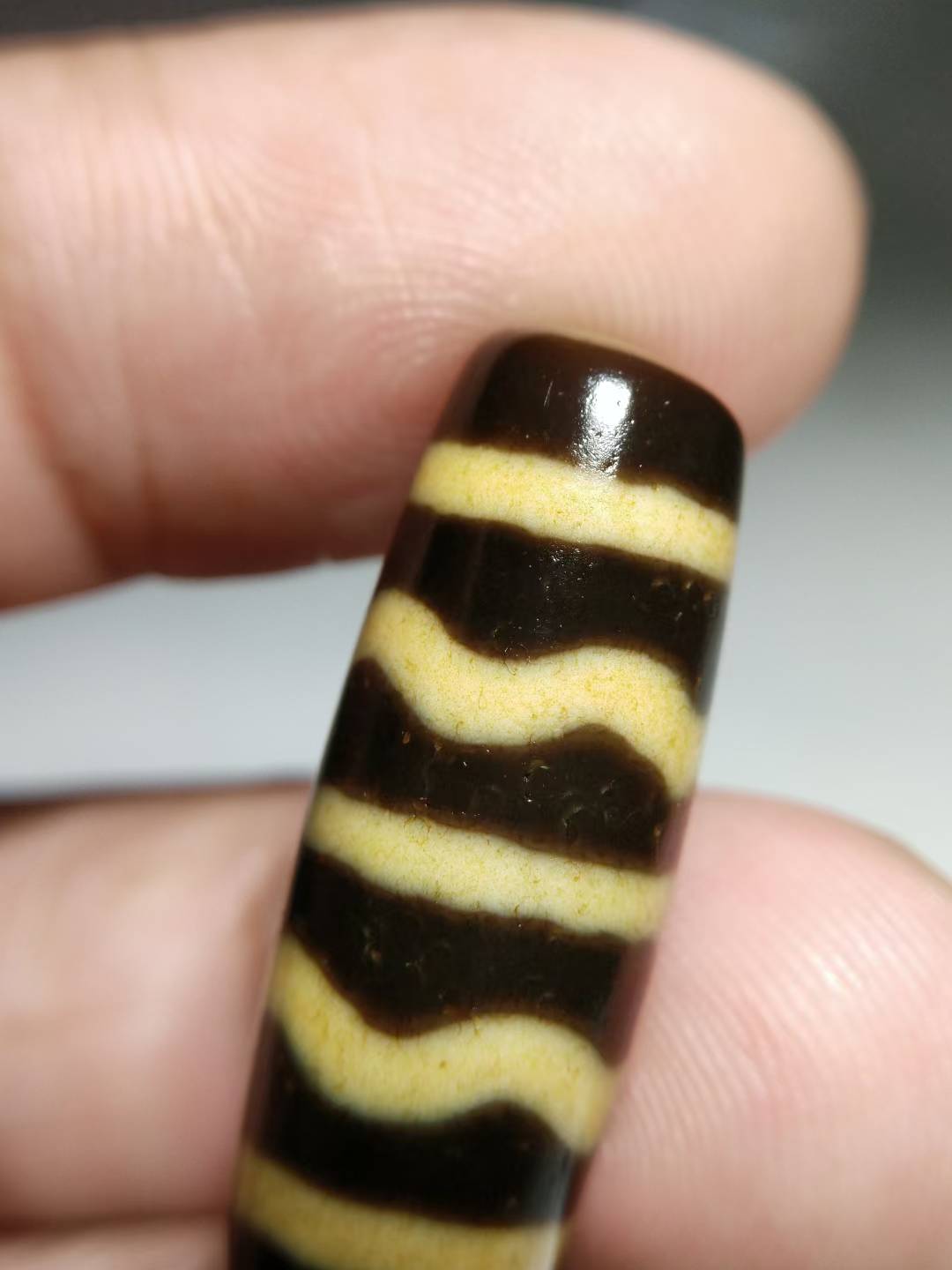 NO.8101Ancient Tibetan Pure Dzi Bead, Water Ripple Pattern, 30x11mm